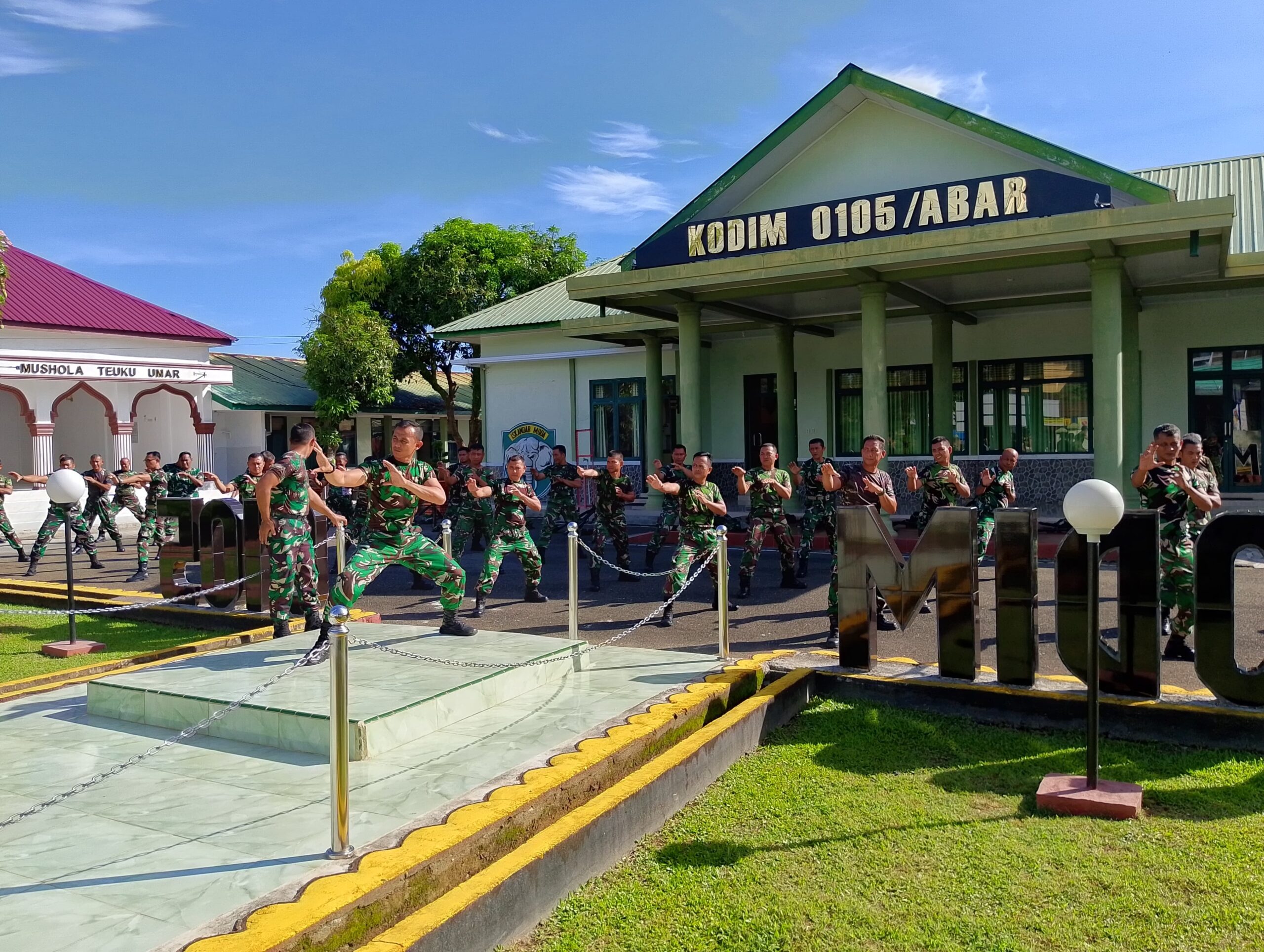 Dandim 0105/Abar Letkol Inf S. Kembaren, S.E., M.I.P., CFrA., menekankan kepada seluruh Prajurit agar serius mengikuti latihan secara bertahap (step by step), sehingga mampu menguasai setiap jurus yang diajarkan.