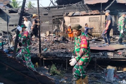 ,BARABAI – Wujud kepedulian terhadap warga yang tertimpa musibah, aparat TNI-POLRI bersama instansi terkait dan relawan melaksanakan pembersihan puing-puing sisa kebakaran di Jalan Mualimin RT 010/RW ...