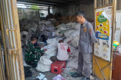 TSN || Surakarta – Babinsa Joyontakan Koramil 03 Serengan Kodim 0735 Surakarta Serka Sudiyono, Bersama Linmas melaksanakan Komsos Dengan Bapak Agus Triyono selaku warga yang kerja di Bank Sampah...