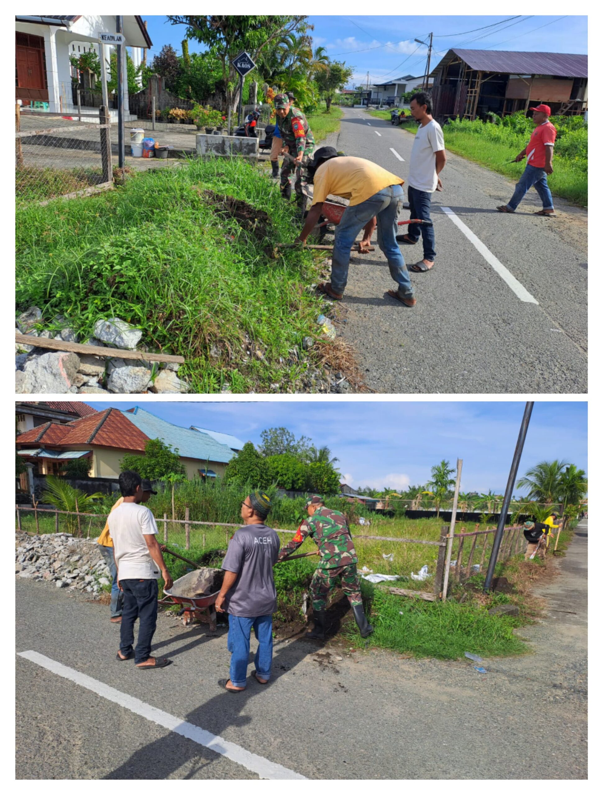 TSN || Meulaboh -Sertu Eriska, Babinsa Koramil 07/Johan Pahlawan, Kodim 0105/Aceh Barat, pimpin gotong royong pembersihan lingkungan di desa Suak Indrapuri, Johan Pahlawan.