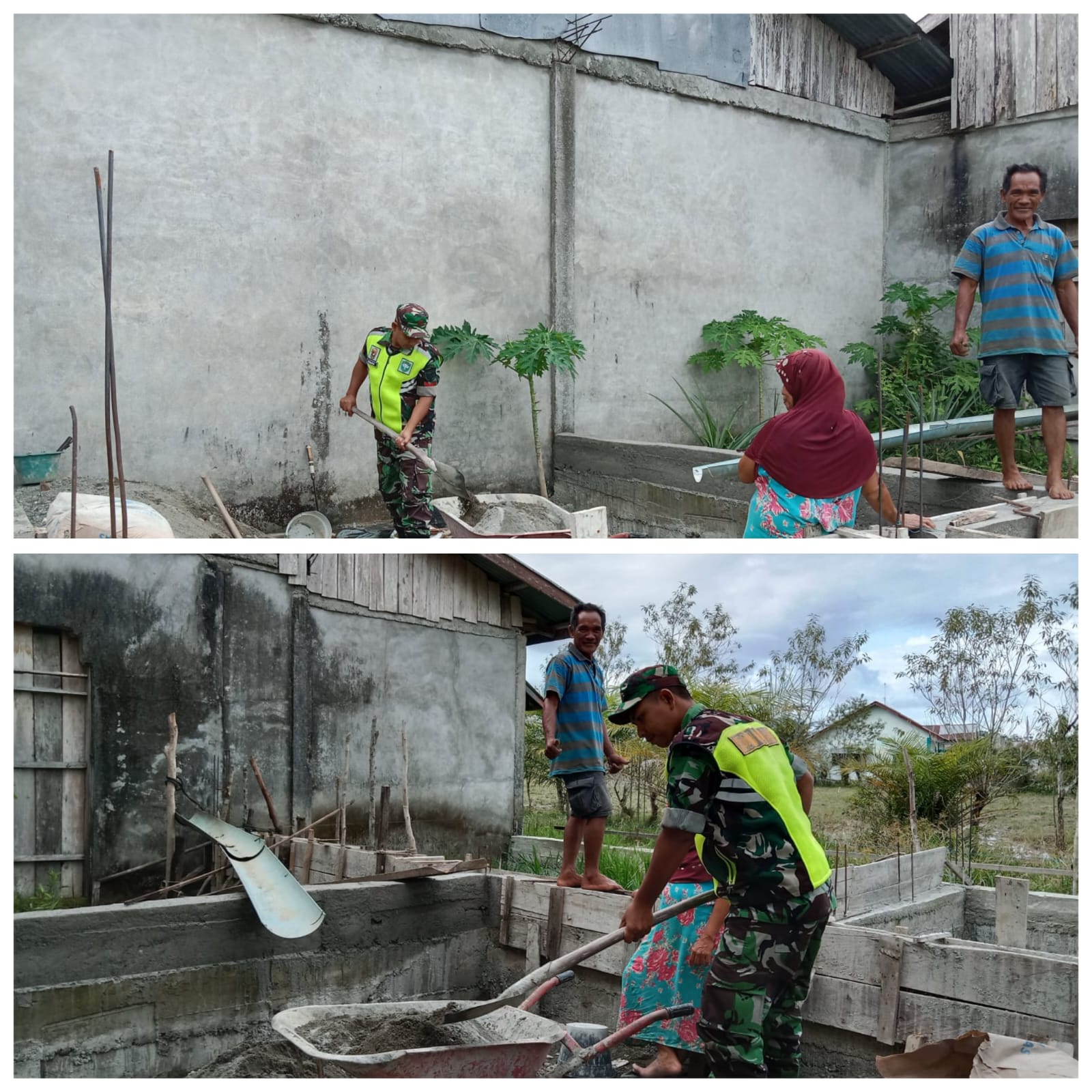 TSN ||Bubon-Babinsa Posramil 06/ Bubon kodim 0105/Aceh barat Kopka Usman membantu pembuatan pondasi rumah milik salah satu warga di Desa Kuala Pling, Kecamatan Bubon Kabupaten Aceh barat, Selasa (21/04/2026).