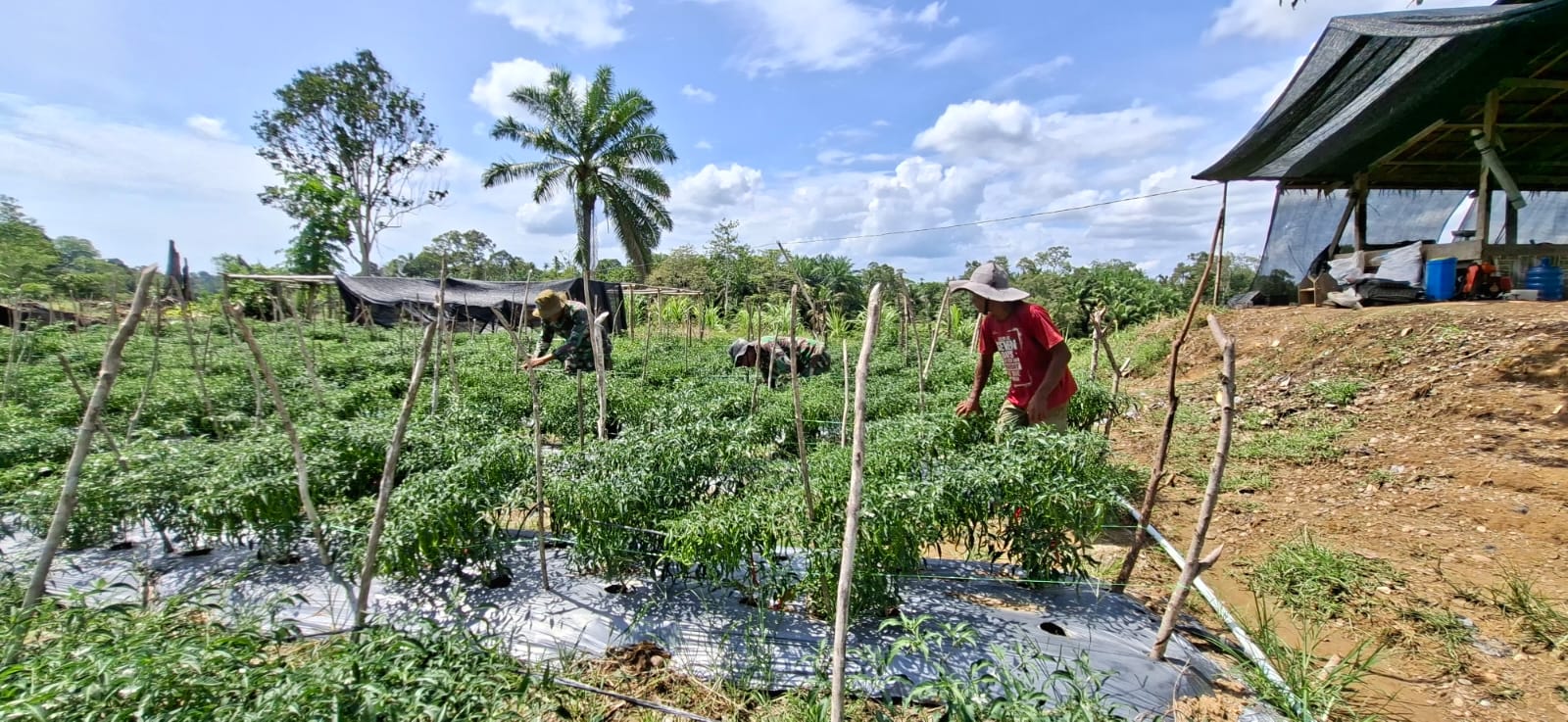 Kebun hortikultura yang dikelola oleh Personel Satgas TMMD bersama masyarakat tersebut ditanami berbagai komoditas unggulan seperti jagung, cabai merah dan semangka. Tanaman-tanaman tersebut tumbuh subur di atas lahan seluas sekitar 5 hektar yang sejak awal program digarap secara gotong royong sebagai bagian dari upaya memperkuat Ketahanan Pangan desa.