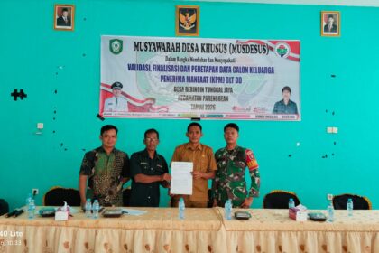 TSN || Kotawaringin Timur – Babinsa Koramil 1015-07/Parenggean Pratu Ponidi menghadiri Musyawarah Desa (Musdes) penetapan Keluarga Penerima Manfaat (KPM) dan Bantuan Lansung Tunai Dana Desa (BLT...