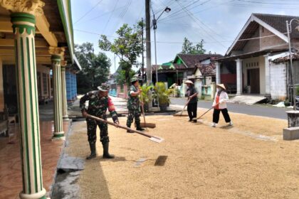 TSN || Sragen, Dalam upaya mendukung peningkatan kualitas hasil pertanian, Babinsa Koramil 18/Kalijabe Kodim 0725/Sragen Sertu Zuhud Fauzi turun langsung membantu petani menjemur padi usai masa panen ...