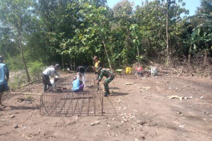 Anyam Besi Jembatan Garuda Dikebut, Babinsa dan Warga Bergotong Royong Bergilir Bangun Akses Harapan