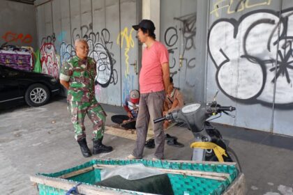 TSN || Surakarta, Babinsa Kratonan Koramil 03/Serengan Kodim 0735/Surakarta Serma Aris Setyo Utomo melaksanakan Komsos dengan Bapak Anton Pengepul Es Balok di Jalan Veteran Kratonan, Serengan Kota Sur...