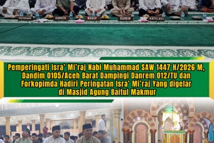 TSN || Aceh Barat – Dalam rangka memperingati peristiwa Isra’ Mi’raj Nabi Muhammad SAW, Danrem 012/TU, Kolonel Inf Windarto, S.Sos, M.M. bersama Dandim 0105/Aceh Barat, Letkol Inf S Kembaren,S.E...