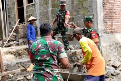 TSN || Srag, Sebagai bentuk kepedulian terhadap kondisi warga binaannya, Babinsa Desa Gilirejo Koramil 16/Miri Kodim 0725/Sragen Kopka Eko Budi turun langsung membantu proses pembuatan pondasi rumah m...