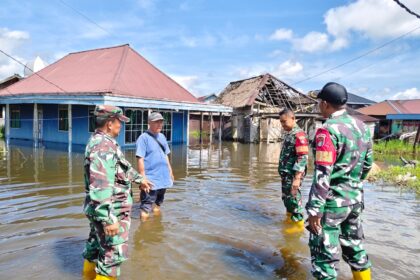 TSN || HULU SUNGAI TENGAH-Koramil 1002-08/Labuan Amas Utara melaksanakan aksi pemantauan banjir yang melanda Desa Sungai Buluh dan Mantaas, Kecamatan Labuan Amas Utara Banua, Kabupaten Hulu Sungai Ten...