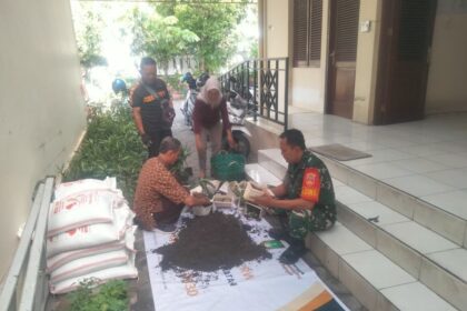TSN || Surakarta – Babinsa Kelurahan Purwodiningratan Koramil 04/Jebres kodim 0735/Surakarta Serka Suparno bersama warga dalam menyiapkan media tanam di pot dan polybag merupakan bentuk pendampi...