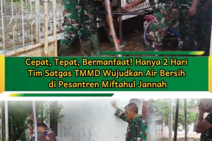 TSN || Aceh Barat – Gerak cepat tanpa tunda, tim Satgas TMMD Reguler ke-127 Kodim 0105/Abar bersama masyarakat sukses mewujudkan air bersih di Pesantren Miftahul Jannah yang berlokasi di Desa Lueng Ja...