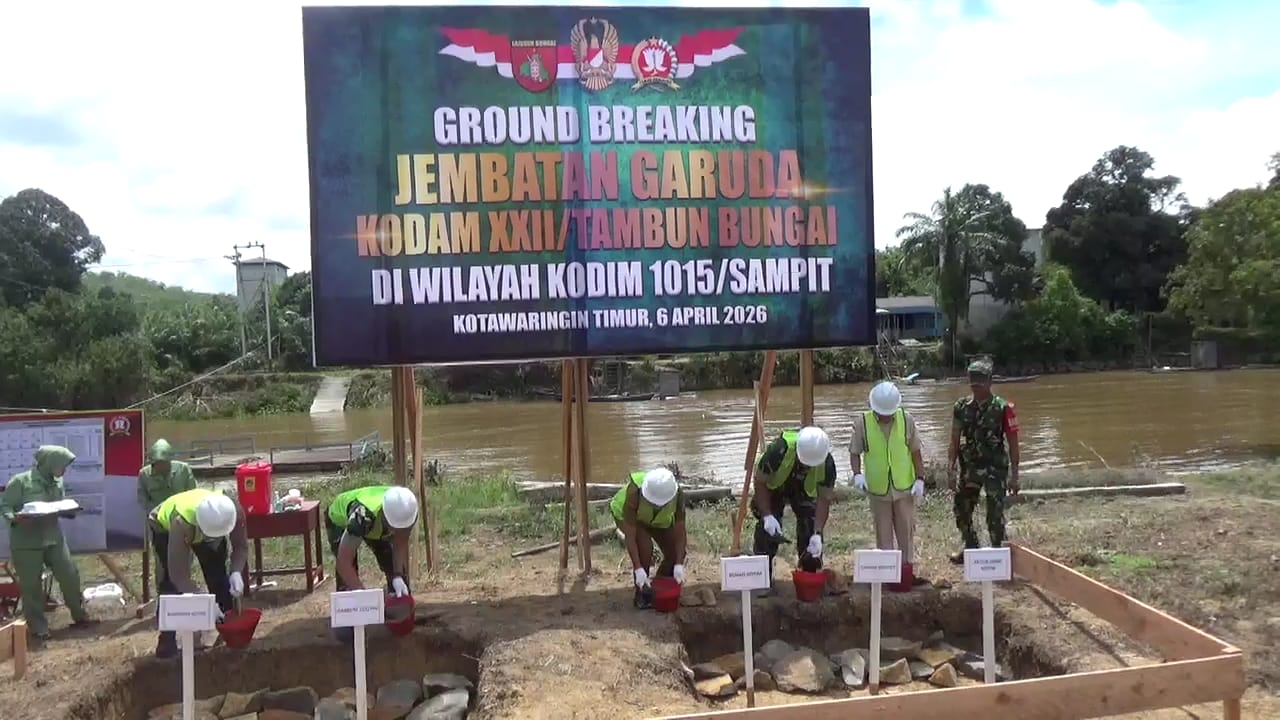 TSN || Kotawaringin Timur – Komandan Kodim 1015/Sampit, Letkol Inf Dwi Candra Setyawan, menghadiri kegiatan Ground Breaking pembangunan Jembatan Perintis Garuda XXII/Tambun Bungai yang dilaksanakan di Dusun Tandang, Desa Barunang Miri, Kecamatan Parenggean, Kabupaten Kotawaringin Timur, Senin (6/4/2026).