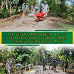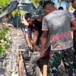 Aceh Barat – Derap maju melangkah pasti, Personel Satgas TMMD Reguler ke-127 Kodim 0105/Abar bersama masyarakat terus berjibaku melanjutkan pengecoran dinding wingwall di Desa Pasi Aceh, Kecamatan Woyla, Kamis (26/2/2026)