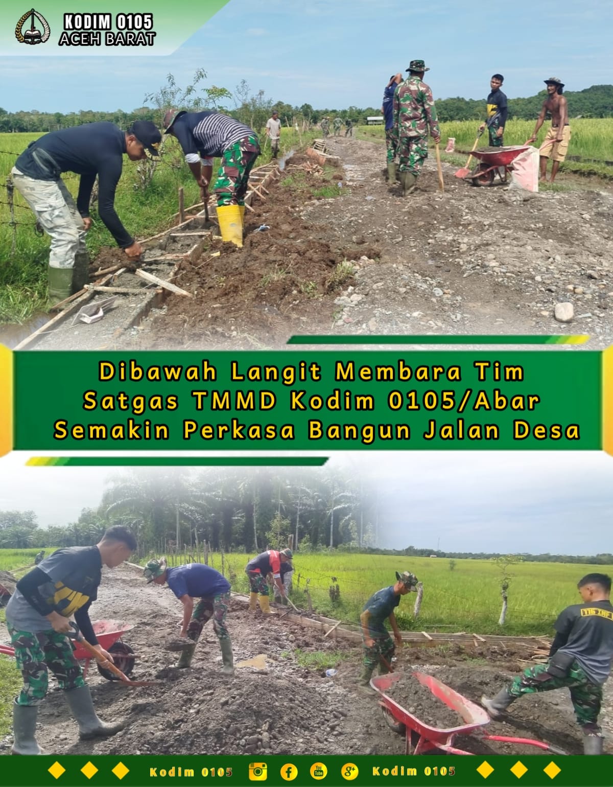 TSN || Aceh Barat – Di bawah terik langit yang membara, semangat pengabdian tak pernah padam. Gagah perkasa, Tim Satgas TMMD Reguler ke-127 Kodim 0105/Abar bersama masyarakat terus menggeber pembangunan jalan di Desa Pasi Aceh, Kecamatan Woyla, Sabtu (28/2/2026)