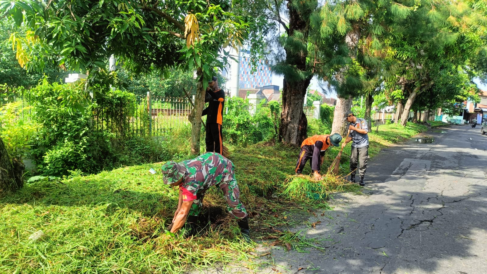 TSN || Surakarta – Babinsa Kelurahan Manahan Koramil 02/Banjarsari Kodim 0735/Surakarta Serma Saring bersama warga masyarakat melaksanakan kegiatan kerja bakti sosial membersihkan jalan dan parit serta membersihkan halaman dilingkungan, Selasa (21/04/2026).