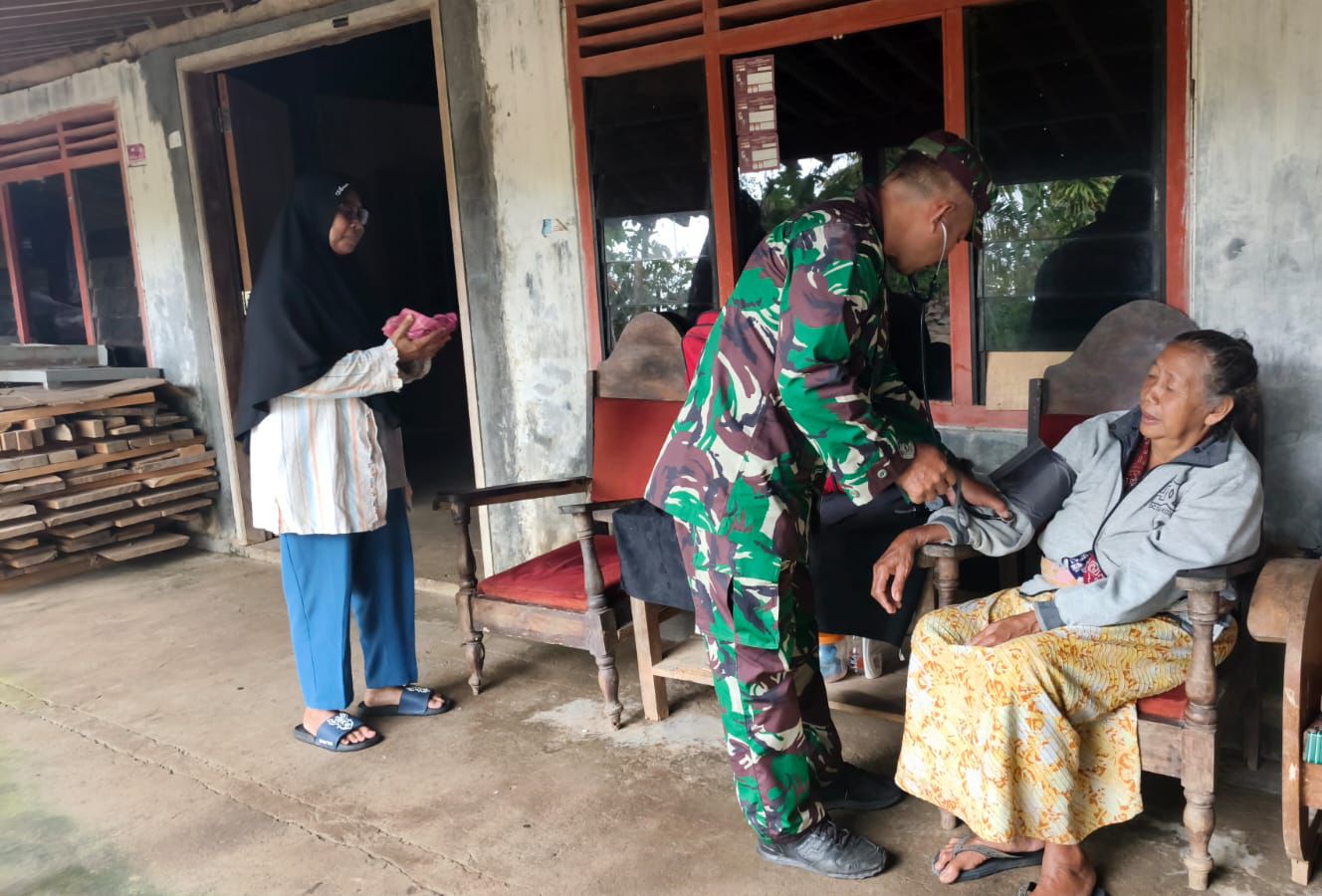 Salah satu momen mengharukan terjadi saat Pelda Agung Iriyanto bersama tim kesehatan bergerak cepat mendatangi rumah seorang warga lanjut usia yang dilaporkan sedang sakit.