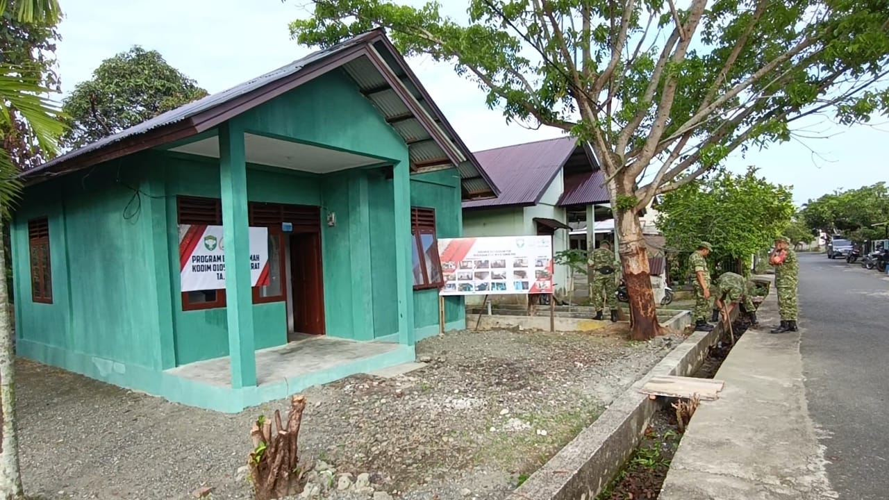 TSN || Aceh Barat – Sungguh bak sebuah keajaiban. Tak sampai satu bulan, Personel Satgas TMMD Reguler ke-127 Kodim 0105/Abar berhasil menyulap sebuah rumah kumuh menjadi rumah yang kokoh dan megah. Rumah tersebut milik Bapak Fatdjeri (56), warga Padang Seurahet, Kecamatan Johan Pahlawan, Kabupaten Aceh Barat.