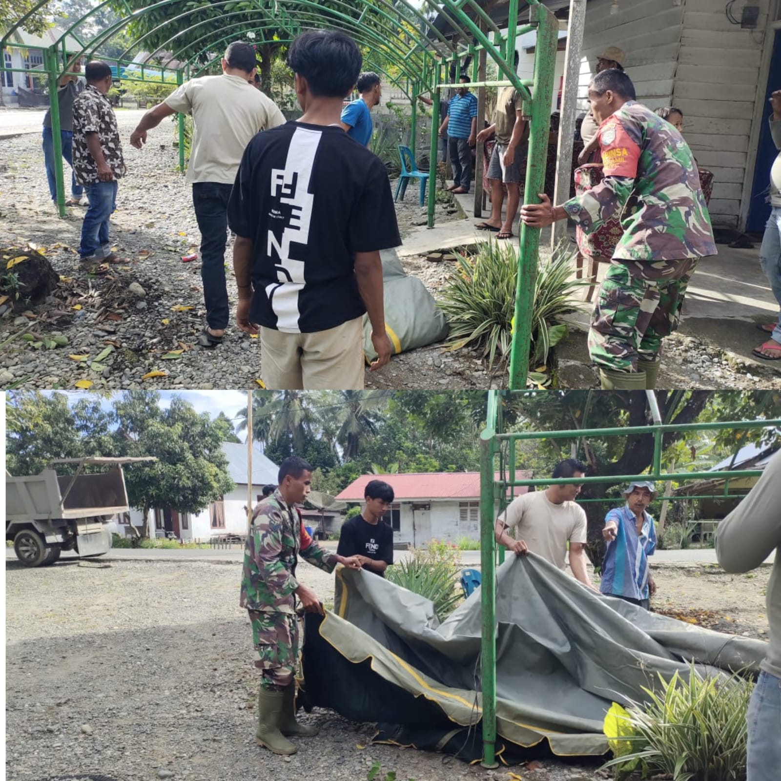TSN || Pante Ceureumen – Babinsa Posramil 05/Pante Ceureumen kodim 0105/Aceh Barat, Sertu Modini bersama masyarakat melaksanakan kegiatan gotong royong dalam rangka mendirikan teratai sebagai persiapan acara hajatan warga. Kegiatan ini berlangsung dengan penuh semangat kebersamaan, di mana Babinsa turut langsung membantu proses pembangunan mulai dari penyiapan bahan, pemasangan rangka, hingga penataan lokasi agar siap digunakan, di Desa Meunuang kinco kec Pante Ceureumen kab Aceh Barat, Rabu (22/4/2026).