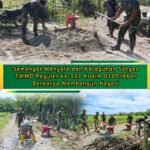 Antusiasme masyarakat pun semakin membara, mereka merasa bangga dapat bekerja berdampingan langsung dengan prajurit TNI, membangun desa demi masa depan yang lebih baik.