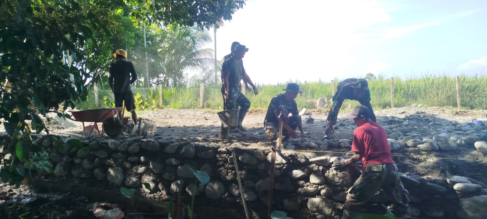 Dengan penuh ketelitian, tangan-tangan kreatif personel Satgas TMMD bersama masyarakat setempat menyusun batu koral tersebut sedemikian rupa hingga terlihat rapi, kuat, dan memiliki daya tahan yang baik. Kolaborasi antara TNI dan masyarakat ini menjadi bukti nyata semangat gotong royong dalam mewujudkan pembangunan desa.