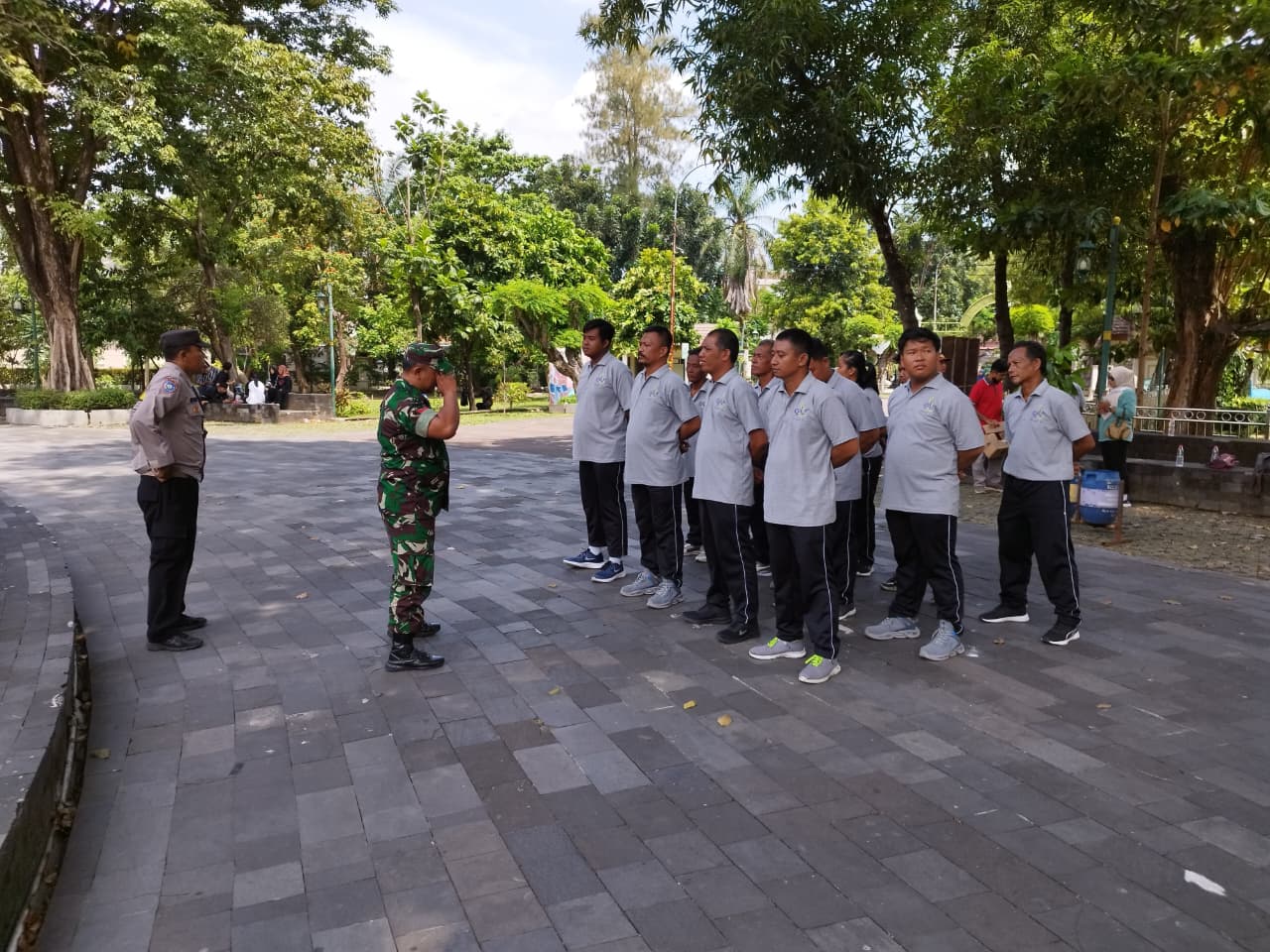TSN || Surakarta – Babinsa Kelurahan Sudiroprajan Koramil 04/Jebres Kodim 0735/Surakarta Sertu Watono dan Koptu Devid SW bersama Bhabinkamtibmas Aipda Rudy Ardhiawan memberikan pelatihan materi Peraturan Baris Berbaris (PBB) kepada sejumlah Linmas Kelurahan Sudiroprajan bertempat di Halaman Monumen 45 Kecamatan Banjarsari, Minggu (19/04/2026).