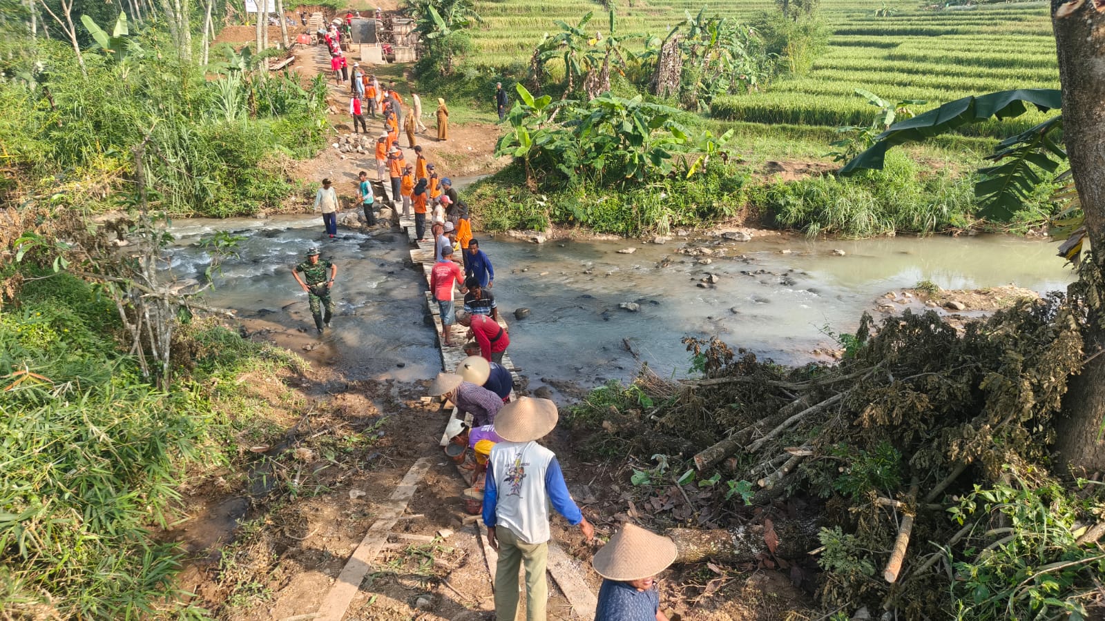 Danramil 18/Girimarto Kapten Inf Prahwoto menyampaikan, kebersamaan ini menjadi contoh positif bahwa sinergi antara TNI dan rakyat mampu menghasilkan manfaat besar bagi daerah. Jembatan Garuda nantinya memiliki peran strategis karena menghubungkan tiga wilayah sekaligus, yakni Desa Jendi, Desa Nungkulan, dan Kelurahan Gemawang.