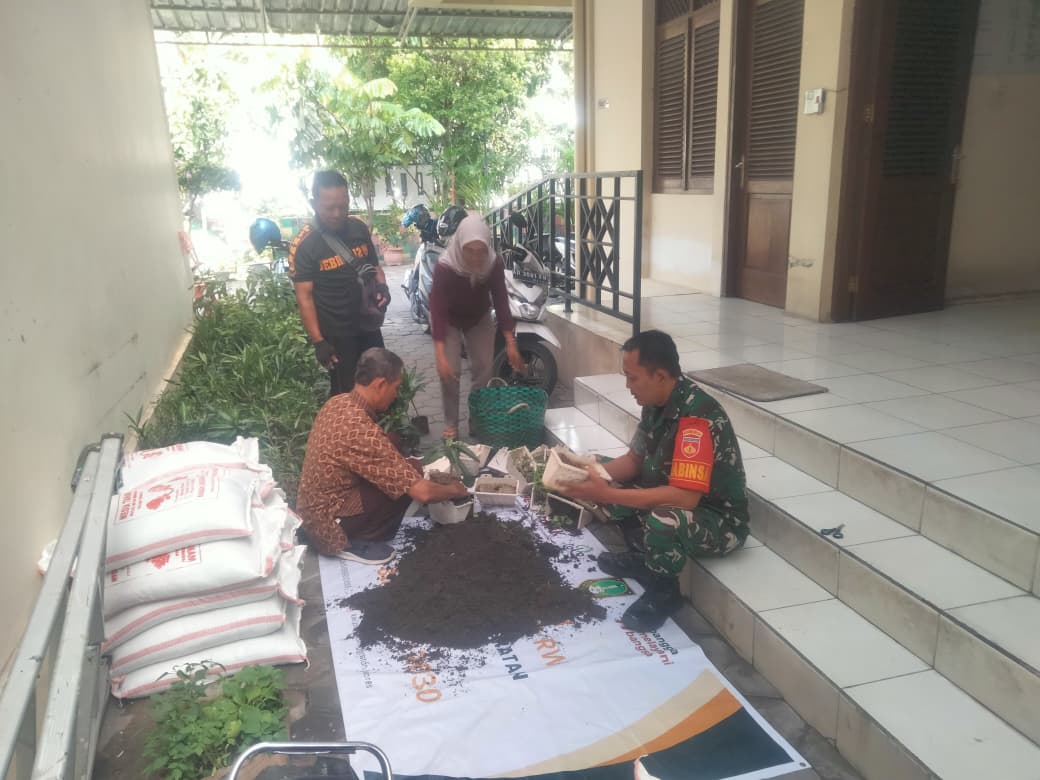 TSN || Surakarta – Babinsa Kelurahan Purwodiningratan Koramil 04/Jebres kodim 0735/Surakarta Serka Suparno bersama warga dalam menyiapkan media tanam di pot dan polybag merupakan bentuk pendampingan ketahanan pangan yang aktif dilakukan untuk memanfaatkan lahan sempit atau pekarangan. Senin (20/04/2026)