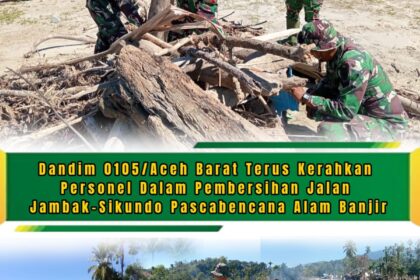 TSN || Aceh Barat – Komandan Kodim (Dandim) 0105/Aceh Barat, Letkol Inf S Kembaren.S.E.,M.I.P.,CFrA kerahkan Personel untuk turun langsung ke lapangan melaksanakan pembersihan Jalan penghubung D...