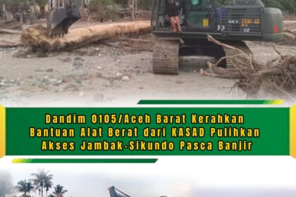 TSN || Aceh Barat – Dandim 0105/Aceh Barat, Letkol Inf S Kembaren,S.E.,M.I.P.,CFrA., memerintahkan pengerahan alat berat untuk bekerja tanpa henti, guna mempercepat pembukaan kembali jalan penghubung ...