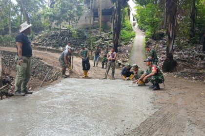 TSN–Lombok Barat, NTB – Detik-detik menjelang penutupan TNI Manunggal Membangun Desa (TMMD) ke-126 Komando Distrik Militer (Kodim) 1606/Mataram, suasana Desa Giri Madia, Kecamatan Lingsar, Lombo...