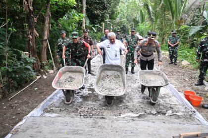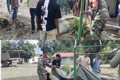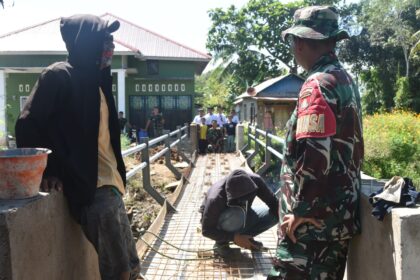TSN || Pante Ceureumen – Babinsa Posramil 05/Pante Ceureumen kodim 0105/Aceh Barat, Sertu Modini bersama masyarakat melaksanakan kegiatan gotong royong dalam rangka mendirikan teratai sebagai pe...