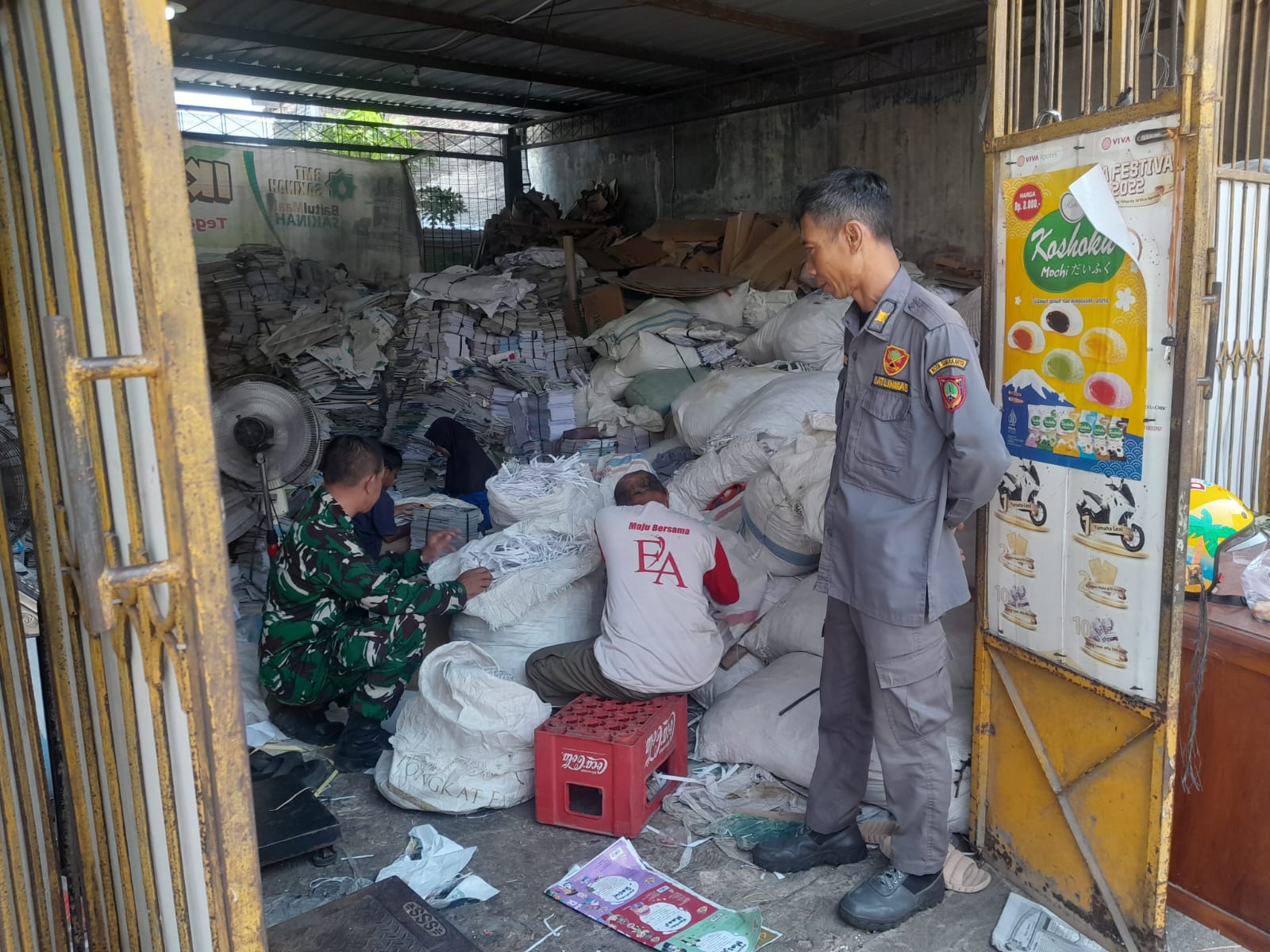 TSN || Surakarta – Babinsa Joyontakan Koramil 03 Serengan Kodim 0735 Surakarta Serka Sudiyono, Bersama Linmas melaksanakan Komsos Dengan Bapak Agus Triyono selaku warga yang kerja di Bank Sampah, kegiatan Bank Sampah ini meliputi pemilahan dan penimbangan yang dilakukan di Rt 03 Rw 05 Jontakan Serengan Kota Surakarta, Minggu 12 April 2026 pukul 09.00 Wib s.d selesai.