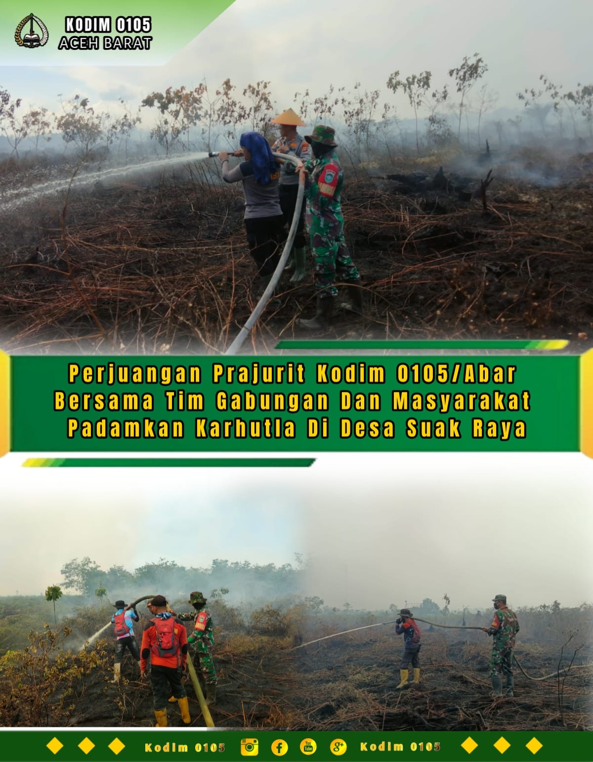 Kemudian Dandim juga menegaskan akan terus memerintahkan para Babinsa jajaran untuk melakukan upaya pemadaman hingga api benar-benar padam.