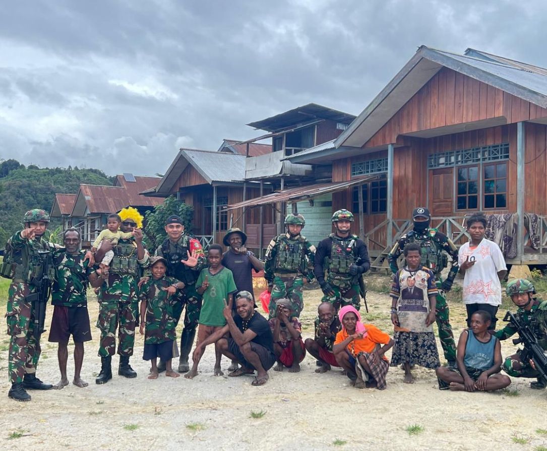 Home / Berita TNI / Pos Parim Satgas Yonif 751/VJS Anjangsana ke Kampung Etilkatop: Kenalkan “Bapak Yakob” sebagai Maskot Humanis & Berbagi Keceriaan dengan Anak-Anak