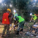TSN || BARABAI – Penuh semangat kebersamaan, anggota TNI bersama warga masyarakat bahu membahu dalam pembangunan Jembatan Garuda di Desa Paya Besar, Kecamatan Batu Benawa, Kabupaten Hulu Sungai Tengah, Minggu (19/4).