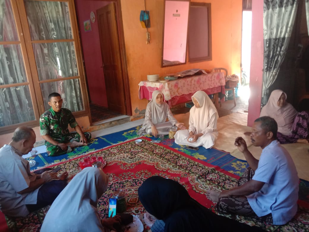 Suasana hangat dan penuh kekeluargaan terasa sejak awal kedatangan Babinsa. Sertu Buchari Muslim disambut dengan senyum ramah keluarga besar Bapak Zamburi. Dalam pertemuan tersebut, terjalin obrolan ringan seputar kehidupan sehari-hari, kondisi lingkungan, serta harapan masyarakat terhadap peran Babinsa dalam menjaga keamanan dan ketertiban wilayah.