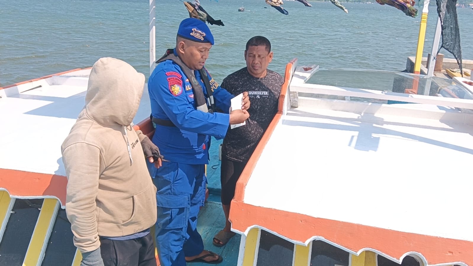 Sebagai bentuk nyata dari himbauan tersebut, jajaran Ditpolairud Polda NTB melaksanakan pembagian life jacket kepada nelayan serta menempelkan stiker Siaga SAR Ditpolairud pada kapal dan sampan nelayan. Stiker tersebut berfungsi sebagai sarana informasi dan pengingat terkait keselamatan serta kesiapsiagaan dalam menghadapi situasi darurat di laut.