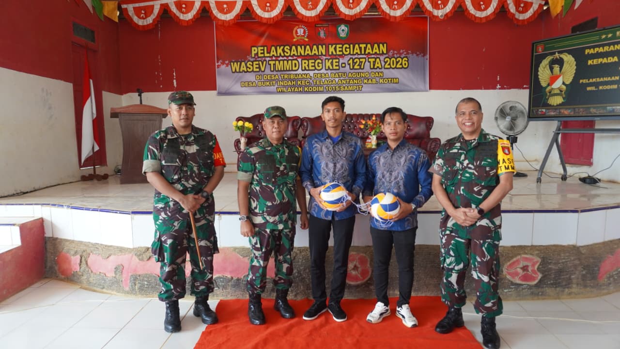 TSN || Kotawaringin Timur – Dalam rangkaian kunjungan kerja pengawasan dan evaluasi (Wasev) TMMD ke-127 Kodim 1015/Sampit Tim Wasev Mabesad turut melaksanakan kegiatan non fisik berupa penyerahan bantuan Alat Olahraga kepada Karang Taruna di Balai Desa Tri Buana, Kecamatan Telaga Antang, Kabupaten Kotawaringin Timur, Selasa (03/03/2026)