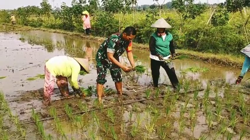 TSN || Blitar – Babinsa Kelurahan Srengat Koramil 0808/06 Srengat Serka Ali Japar, melaksanakan kegiatan ketahanan pangan dengan membantu warga menanam padi di lahan pertanian milik Bapak Sujoko. Kegiatan tersebut berlangsung di RT. 2 RW. 1 Kelurahan Srengat Kecamatan Srengat Kabupaten Blitar, pada Minggu (14/12/2025).